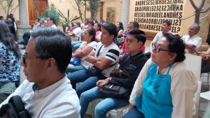 Ante integrantes de la comunidad artística, periodistas y seguidores de Santa Cultura, la doctora Itandehui Méndez se encargó de moderar este conversatorio, que tuvo como sede la Biblioteca Henestrosa en el centro de la ciudad.